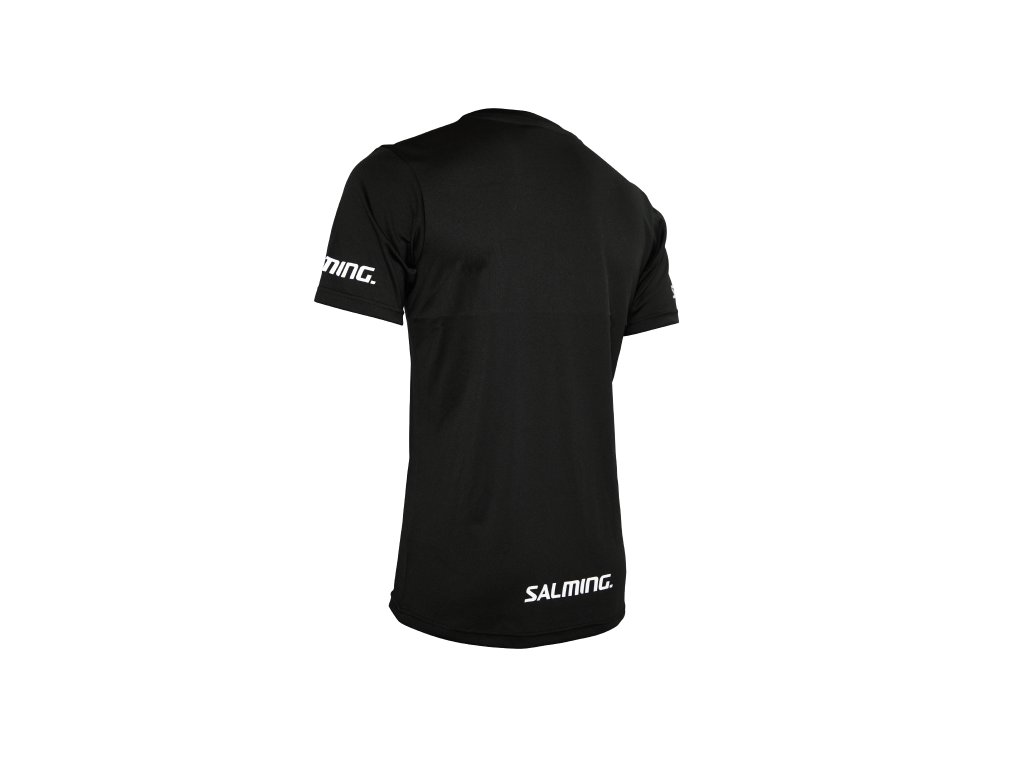 Dětské tréninkové triko z funkčního materiálu Salming Core 22 Training Tee JR v černé variantě. Na tričku je natisknuté logo na obou rukávech a na zadní straně ve spodní části, triko tak ctí trendy minimalismu a poskytuje spoustu prostoru pro případný potisk.